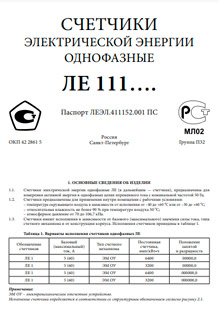 Постоянная счетчика имп/(кВт*ч) ……………… 3200